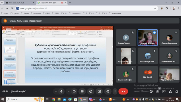 Кафедру права та методики викладання правознавства представляли старший викладач, к.ю.н. Курова Аліна Анатоліївна, доцент кафедри, к.ю.н. Звірко Олександр Євстафійович, викладач кафедри к.ю.н., Нестеренко Олександр Сергійович, які в своїх виступах підняли актуальні питання процесу гармонізації національного законодавства з міжнародним правом і механізмів забезпечення та захисту прав людини в різних сферах життя.