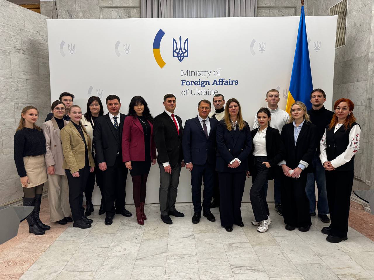 22 грудня, у День працівників дипломатичної служби, науково-педагогічні працівники та здобувачі освіти кафедри у складі делегації ННІ історії, права та міжнародних відносин відвідали Міністерство закордонних справ України.